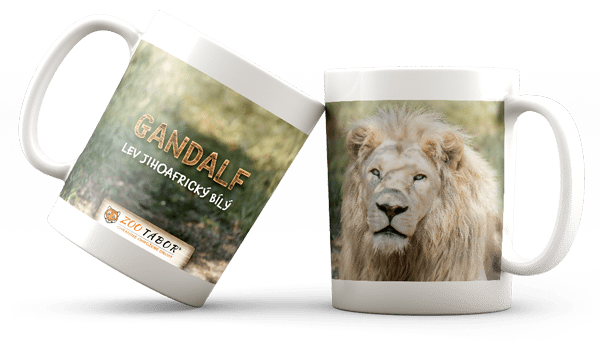 Hrnek o objemu 300 ml s reálnou fotografií našeho vzácného bílého lva Gandalfa.